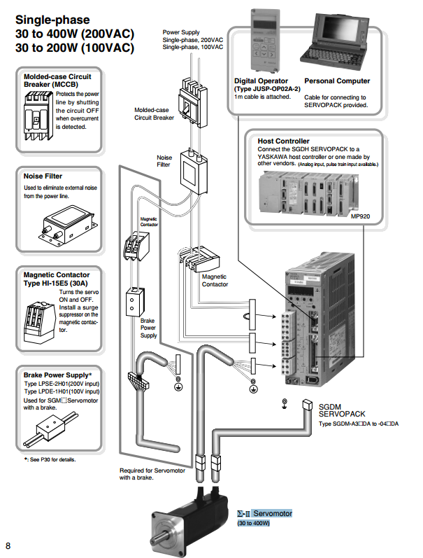 Conecte el SERVOPACK SGDH a un controlador de host YASKAWA o uno hecho por otros proveedores. MP920 (entrada analógica, entrada de tren de pulsos disponible)