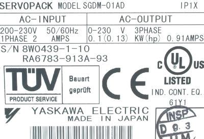Servo Drives industriales YASKAWA SERVOPACK SIGMA-2 0.1KW SGDM-01AD Entrada 2AMPS Detalles Rápidos